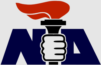 The first logo (1974-1985) is officially described as "Αναμμένος πυρσός, του οποίου η φλόγα είναι στραμμένη προς το γράμμα Ν και τον οποίον κρατεί ένα χέρι. Η όλη σύνθεσις δύναται να περικλείεται εντός κύκλου" (English: (a) Lighted torch, whose flame is directed towards the letter N and which is held by a hand. The whole composition can be enclosed in a circle) (source: