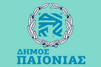 The flag of Paionia is light green with the emblem centered above the name.
