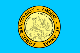 The flag of Mantoudi-Limni-Agia Anna is blue with the seal centered: