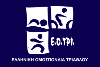 The flag of the Hellenic Triathlon Federation is a dark blue field with the federation's emblem