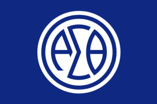 The flag of Organization of Urban Transportation of Thessaloniki is blue with the logo centered.
