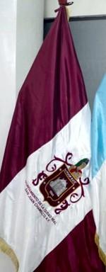 The previous flag uses three vertical stripes of carmine, white, and carmine, but with the old coat of arms.