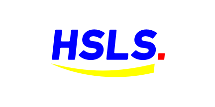 The new emblem of the party consists of the blue italicized block letters "HSLS" followed by a red square dot and underlined with a yellow arched