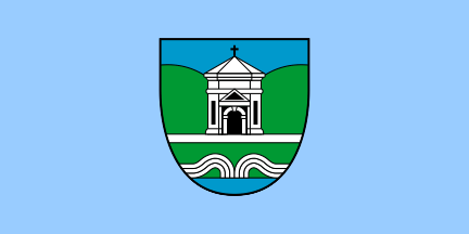 ... contains the coat of arms of the municipality on an entirely light blue background. The coat of arms is set in the centre of the flag, sized 50 cm x 60 cm, perpendicular to the flag axis. The dimensions of the flag are 300 cm x 150 cm.
