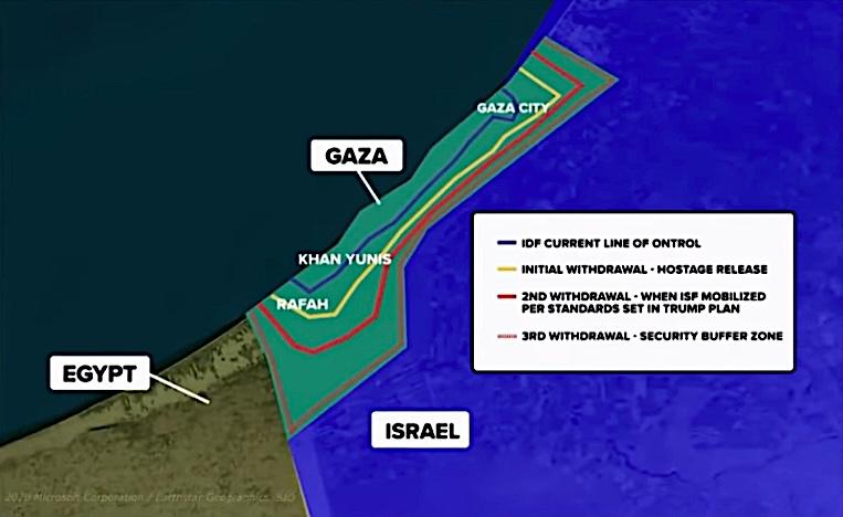 Map of disengagement plan from the Gaza Strip, October 2025 (source: tbn.org).