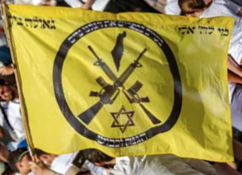 National-patriotic flag, probably of the settler movement. The flag shows on yellow background