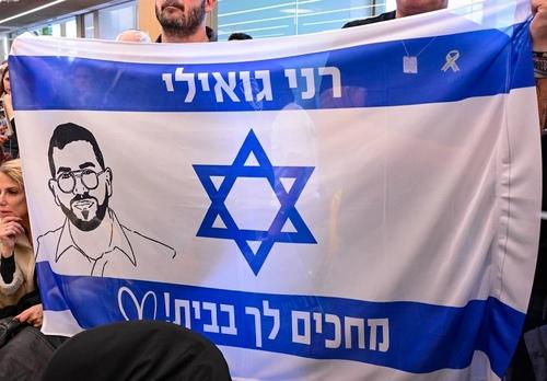 image located by William GarrisonMemorial remembrance flag for Master Sgt. Ran Gvili (24), the remaining Israeli hostage body in Gaza.