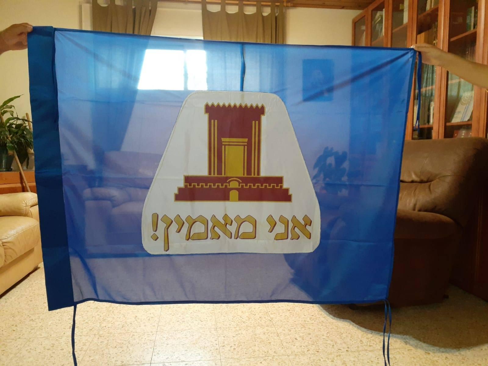 Another version of this flag, with the writing מהרה יבנה המקדש