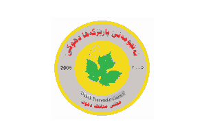 logo has at the top an image of the Kurdish flag around its outer ring. To the