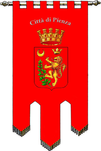 Gonfalone of Pienza, Siena province, Tuscany. Another gonfalone at <www.radicedidue.com>.
