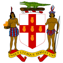 Jamaicas first badge, 1875, was an oval shield bearing St