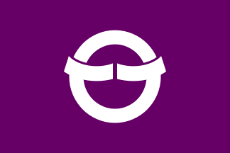 No flag legislation but the above is used in practice. flag proportion: 2:3 colour of field: purple. colour of emblem: white; diameter of emblem: 3/5 flag height; a stylized hiragana Hi ひ.