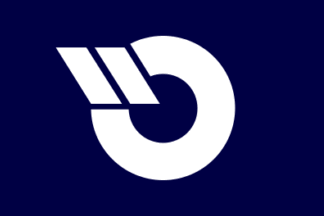 The flag of the town of Mikawa is white with mark. The town is now, from