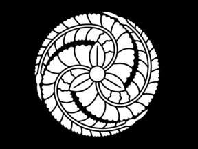 In 1589, he succeeded to the governorship and became the lord of Nakatsu Castle in Buzen Province with 120,000 goku. In the Battle of Sekigahara, he was a member of the Eastern force, and was awarded 520,000 goku of land in Chikuzen Province after the war, largely for his success in luring Kobayakawa Hideaki and Yoshikawa Hiroya to his side. The war banner has dark blue background with Kuroda’s Kamon Family emblem of wisteria flower in white. According to a legend, the wisteria flower was chosen as the family emblem because it was a wisteria flower seen from the prison that comforted Nagamasa's father when he was imprisoned in a dungeon for a year by Araki Murashige, who rebelled against Oda Nobunaga in 1576. Another war banner was black background divided into three equal parts, with white horizontal stripe in the middle topped with the same design Maneki.
