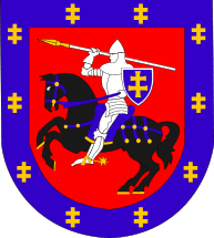 The arms of Vilnius land is one of oldest territorial symbols in Lithuania. It may originate from the times of Grand Duke Algirdas (some historians state the first evidence of its usage in 1366) and it is undoubtedly the heraldic figure since the late 14th century. Its usage continued till World War I, and only the fall of Vilnius land from hand to hand wiped out the historical symbolism. The Heraldry commission of Lithuania decided to keep the earliest version of the knight with a lance for Vilnius land. It is attributed both to Vilnius district and Vilnius county.