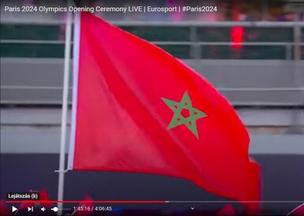 Flag of Marocco observed in the opening ceremony of Paris 2024 Olympics - Image by Zoltan Horvath, 29 July 2024