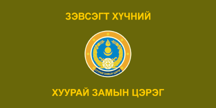 Flag of Ground Forces is olive green and displays emblem of the Ground Force and inscription in Mongolian Cyrillic says "Ground Force of the Armed Forces".