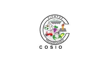 The coat of arms is formed by a "C" shape for CosÃo, and on the frame of this "Siempre Progresando" [Always Progressing] is read. To the left, a map of the territory of the municipality is found, which contains its principal characteristics including: an agave plant, a cactus, a church, the railroad, and a bee representing the industriousness of its inhabitants. Over a book which is found to the right of the center, the symbol of enlightenment is found. This is over the area which represents the worked land; attached to this is a tractor, pumping equipment, and a cluster of grapes along with other products, representing the wealth of the land for agricultural production.