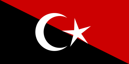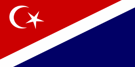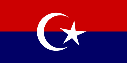 Keywords: johore | johor | malaysia | historical | ceremonial | marshall | canton (red) | crescent: points to fly (white) | star: 5 points (white) | bordure (faceted) | swallowtailed | canton (white) |