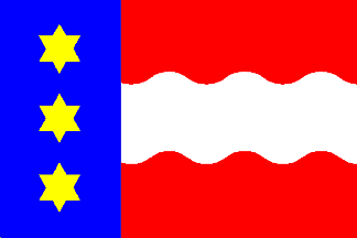of Oostergo: red-white-red; and to the hoist blue, in which per pale the