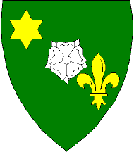Arms: Vert, in bend dexter a six-pointed mullet or, a rose argent and