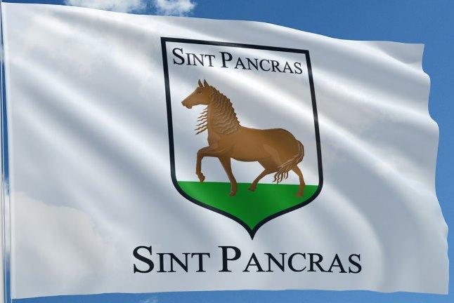 (Note: the official name of the village is Sint Pancras; it is unknown why the name appears differently on the flag).