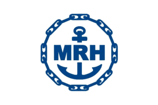 White flag with blue anchor, superimposed by an inscription ”MRH” in blue capitals and surrounded by a blue chain.