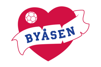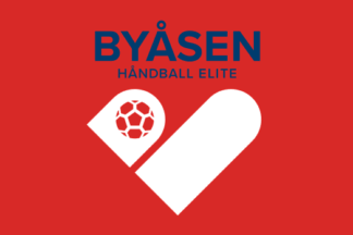 The flags of Byåsen HE (Byåsen Håndball Elite), women's handball team of the Norwegian multi-sports club Byåsen IL (Byåsen Idrettslag) from Trondheim are red or white with the logo centered.