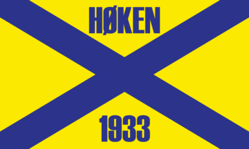 The flags of SPK Høken (Sportsklubben Høken) from Bleik in Andøy Municipality are yellow and blue with the name. Both horizontal tribar and saltire versions are known.
