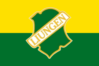 The flag of, now former club, IF Liungen (Idrettsforeningen Liungen) from Lier was yellow over green with the badge centered.