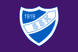 The flag of Sandefjord Skøiteklub is dark blue with a blue and white