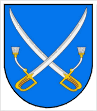 Arms, designed by Mr.Rafał Duszyca, show on the blue shield two crossed