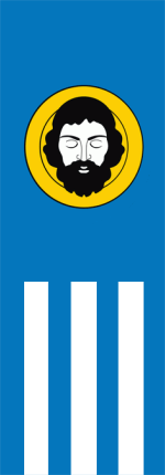 "Arms - on a blue field a cut-off head of Saint John the Baptist on
