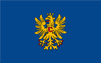 Flag: dark blue rectangle with the Arms in the center, without the