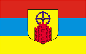 Flag: is composed of three equal horizontal bands: red-blue-yellow with