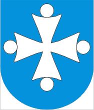 Arms: on the blue shield a silver cavalier (Maltese) cross with four silver balls on its arms. The Arms are based on the seal from 1620. The four balls help to distinguish the Brudzew's Arms from those of Rzeszów.