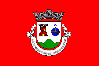 It is a typical Portuguese communal flag, with the coat of arms centred on a plain red field.