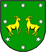 Shield Vert two goats respectant Or, in orle eight 5-point stars Argent.