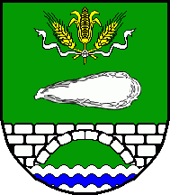 Shield Or a weaver´s shuttle Gules in fess with yarns Argent, on chief a corn cob Gules leafed Vert between two rye ears Vert, all tied Gules,