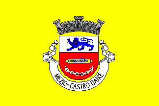 Mural crown Argent with three visible towers (village rank) and white scroll reading in black upper case serifed letters "MOURA MORTA - CASTRO DAIRE".