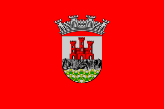 It is a typical Portuguese communal flag with the coat of arms centred on a plain red field.