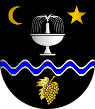 chief a 5-point estoile Or, and in base a grape bunch Or leafed of the same. Mural crown Argent with three visible towers (village rank) and white scroll reading in black upper case serifed letters "CAMBRES"