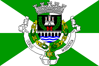 It is a typical Portuguese communal flag, with the coat of arms centred on a field quartered of green and white.