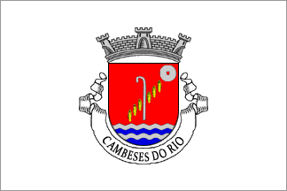 Shield Gules a shepherd´s staff Argent in pale and overall six rye ears Or in pale ordered per bend sinister, in sinister chief a millstone Argent, base wavy of four of Argent and Azure. Mural crown Argent with three visible towers (village rank) and white scroll reading in black serifed letters "CAMBESES do RIO".