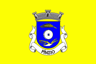 Shield Azure, a millstone Argent, in chief a rye ear Or set per fess, in base a plough Or with plough share Argent. Mural crown Argent with three visible towers and white scroll with inscription in black capitals "PÍNZIO"
