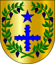 Shield Or a cross raguly coupe Azure, ensigned by an 5-pointed estoile Azure and an European black elder branch Vert fructed proper in orle.
