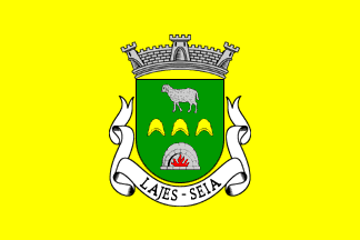 Mural crown Argent with three visible towers (village rank) and white scroll reading in black upper case serifed letters "LAJES - SEIA".