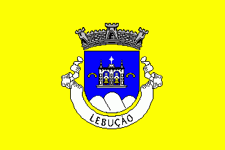Shield Azure, a belfry´s top Argent masoned Sable having two bells Or with bobbins Gules, flanked by two torques Or, issuant from base a triplemount Argent. Mural crown Argent with three visible towers (village rank) and white scroll with inscription in black capitals "LEBUÇÃO".