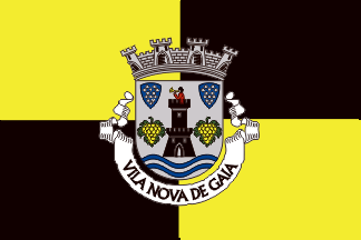 Keywords: vila nova de gaia | tower(black) | grapes(yellow) | escutcheons(2) | quinas(2) | hornblower | base(wavy) |