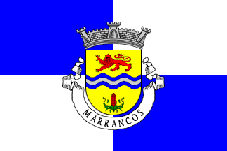 Mural crown Argent with three visible towers (village rank) and white scroll reading in black upper case serifed letters "MARRANCOS".